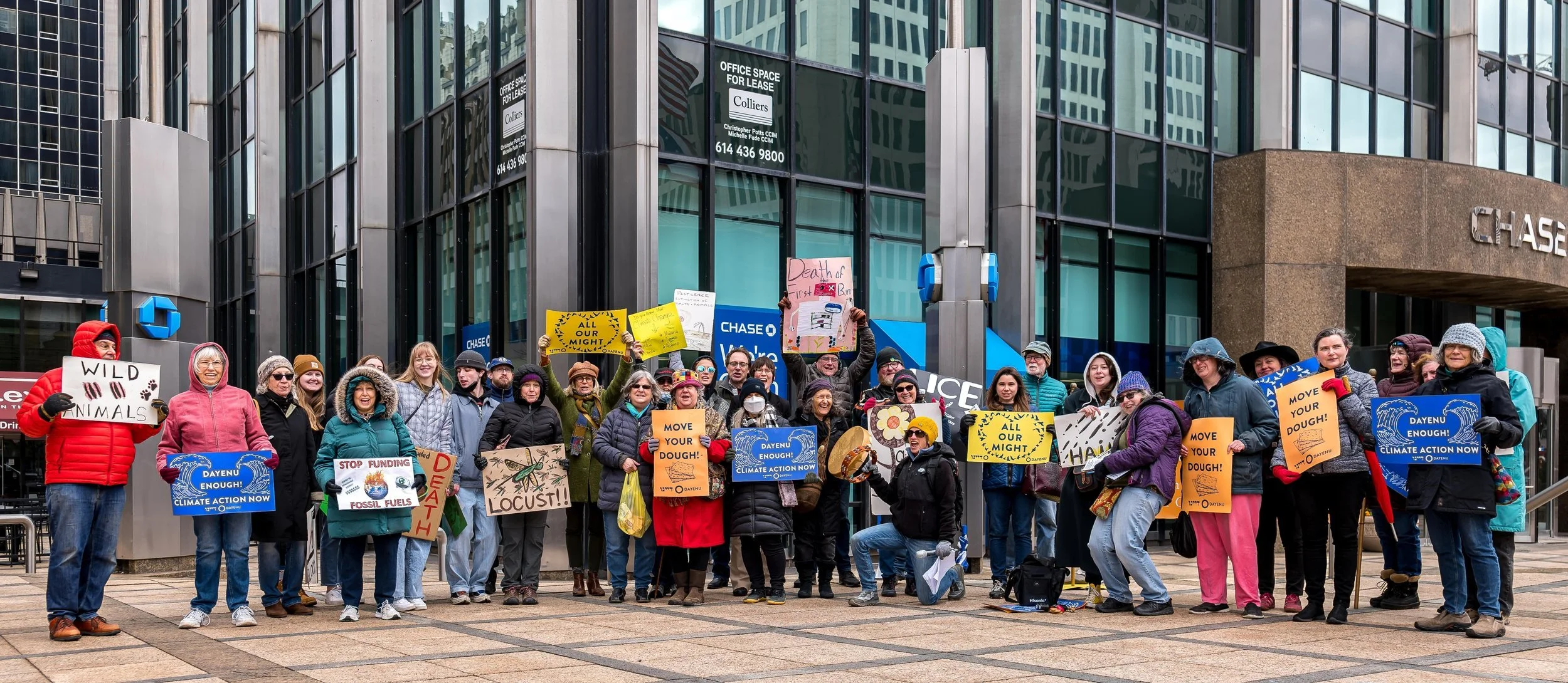 In April of 2022, thousands of Jews and allies from across the US and Canada showed up at the doorsteps of the banks and asset managers that fund fossil fuels, demanding that they divest from life-killing energies and invest in life-giving energies.